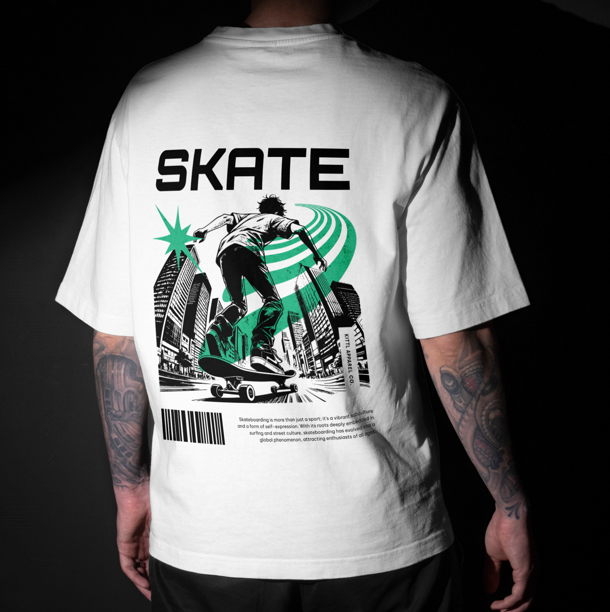 Camiseta Oversized 100% algodão, estampa SKATE, camiseta cor BRANCA.