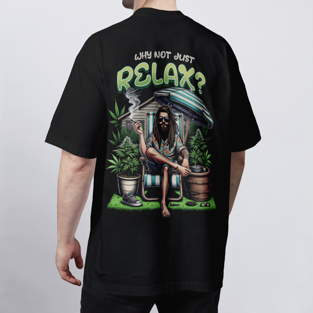 Camiseta Oversized 100% algodão, estampa RELAX.